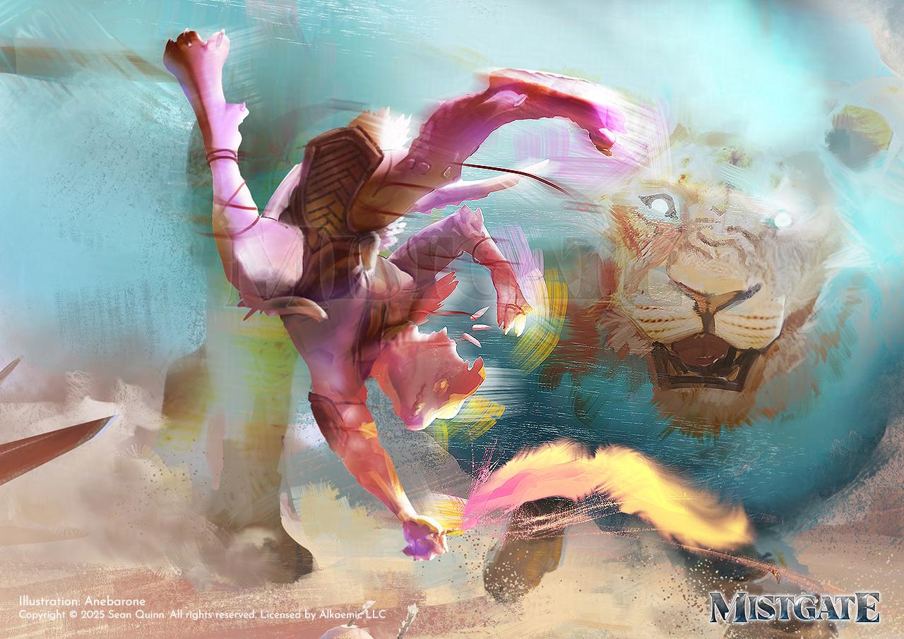 A Kobold fight illustration made for the Mistgate Essentials: Origins book.